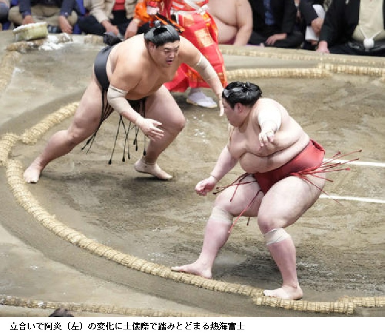 東前頭15枚目の熱海富士(21=伊勢ケ浜)が、関脇大栄翔(追手風)に敗れて2敗に後退した。優勝を争う後続との差が1に縮まり、残り3日に挑むことになった。