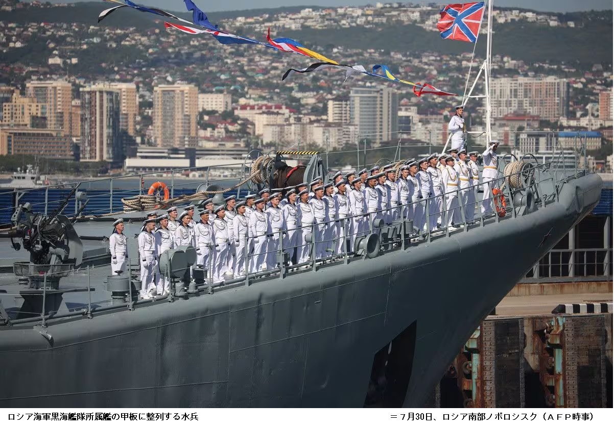 ロシア黒海艦隊、能力低下 「象徴的戦力を弱体化」―英分析 ―― 【パリ時事】英国防省は26日、ウクライナ軍の大規模攻撃で被害を受けたロシア海軍黒海艦隊について、一帯での広範な警備活動や港湾封鎖能力が低下する公算が大きいという見方を示した。ウクライナは同艦隊司令官を攻撃で殺害したと主張している。