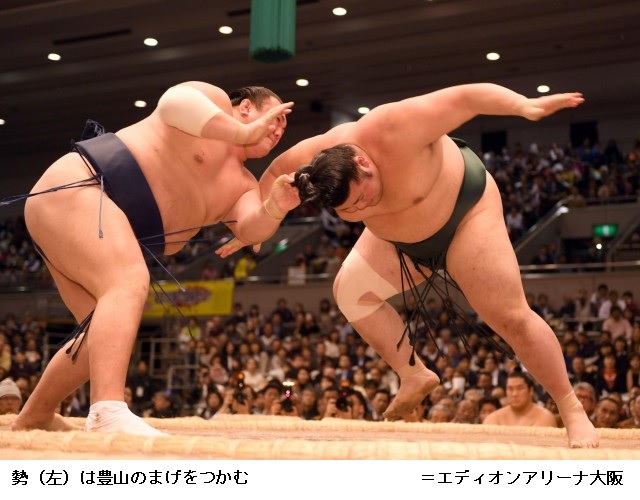 豊山に勢の一番は、勢に相手のまげをつかむ反則があり、豊山の勝ちとなりました。勢は3敗となり、勝ち越しは持ち越しとなりました。