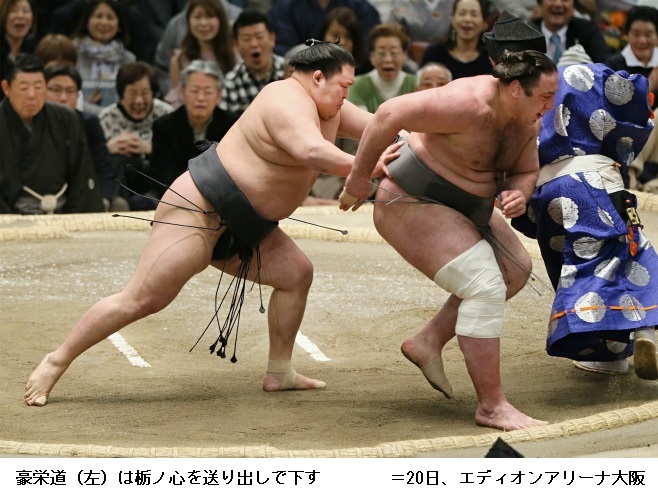 大関 豪栄道に栃ノ心は、豪栄道が送り出しで勝ちました。栃ノ心は3敗に後退です。