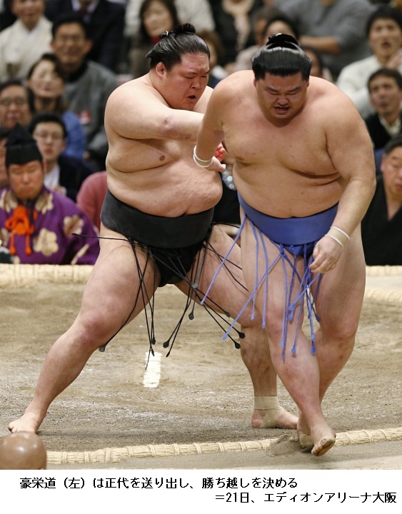 正代に大関 豪栄道は、豪栄道が送り出しで勝って8勝3敗とし、勝ち越しです。