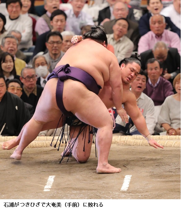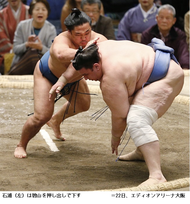 妙義龍に石浦は、石浦が寄り切り。