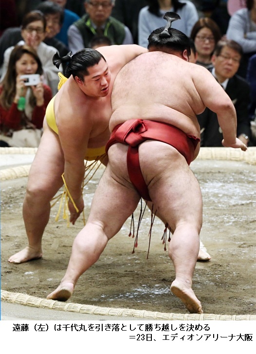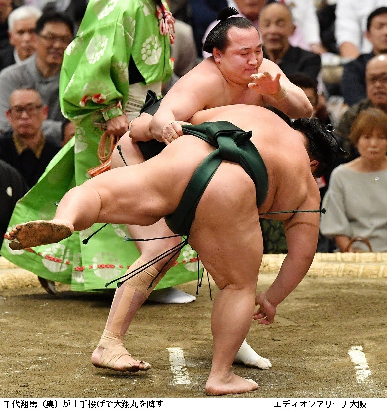 大栄翔に千代翔馬は、千代翔馬が寄り切り。