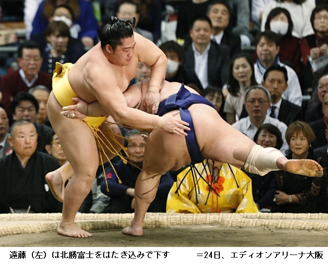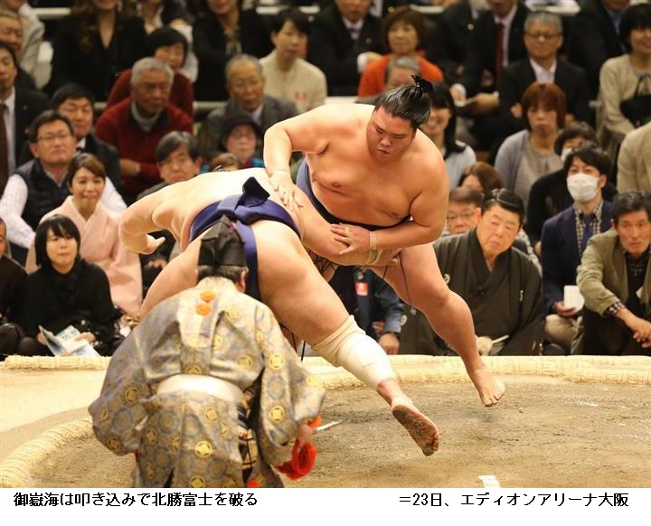 貴景勝に北勝富士は、北勝富士が押し出し。
