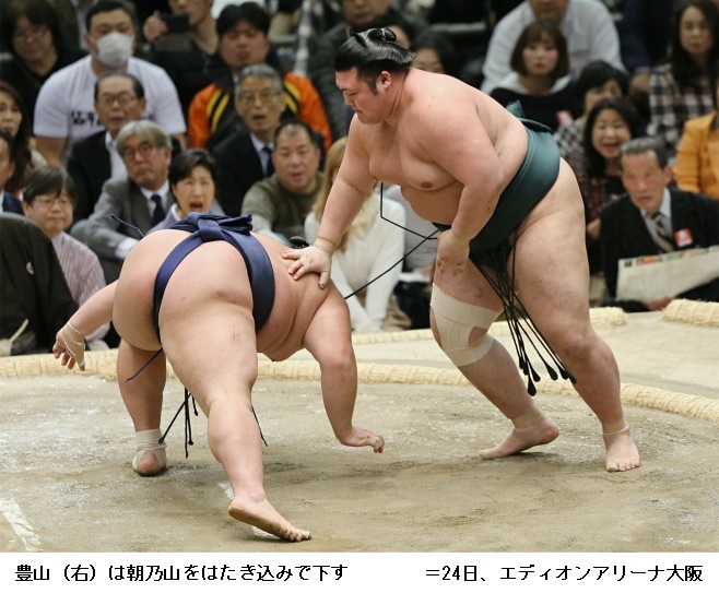 琴勇輝に豊山は、豊山が送り出しで勝ち越しです。