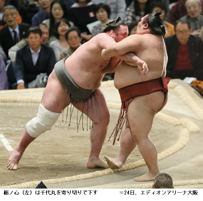 千代大龍に松鳳山は、千代大龍が押し出し。