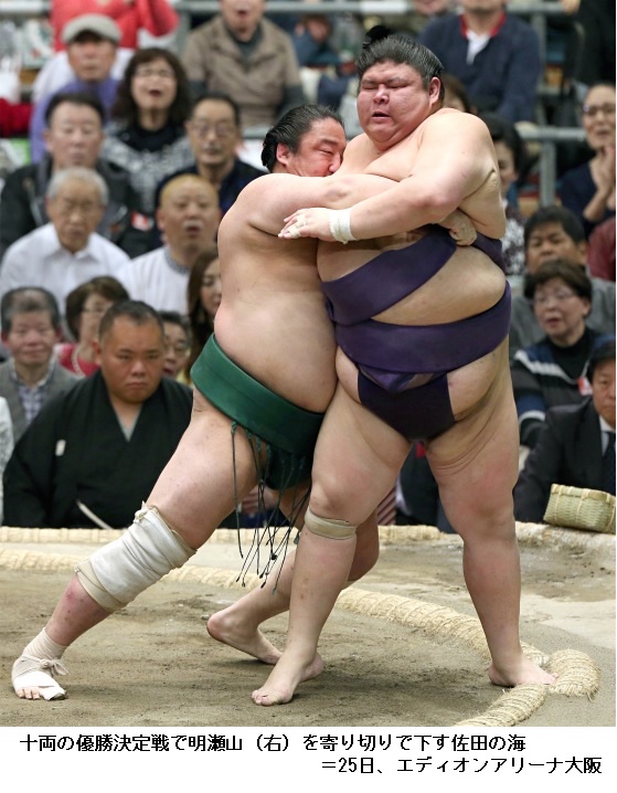大相撲春場所 十両優勝は佐田の海 決定戦制す ―― 大相撲春場所の十両は、幕内の経験が豊富で今場所は十両で相撲を取っていた佐田の海が11勝4敗どうしの決定戦を制し、優勝しました。
