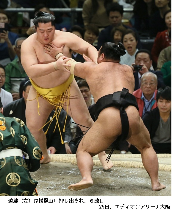 松鳳山に御嶽海は、松鳳山が寄り倒し。