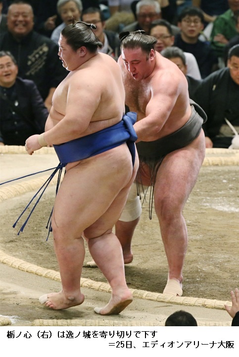 大関・豪栄道に逸ノ城は、豪栄道が寄り切りで勝って9勝3敗としました。
