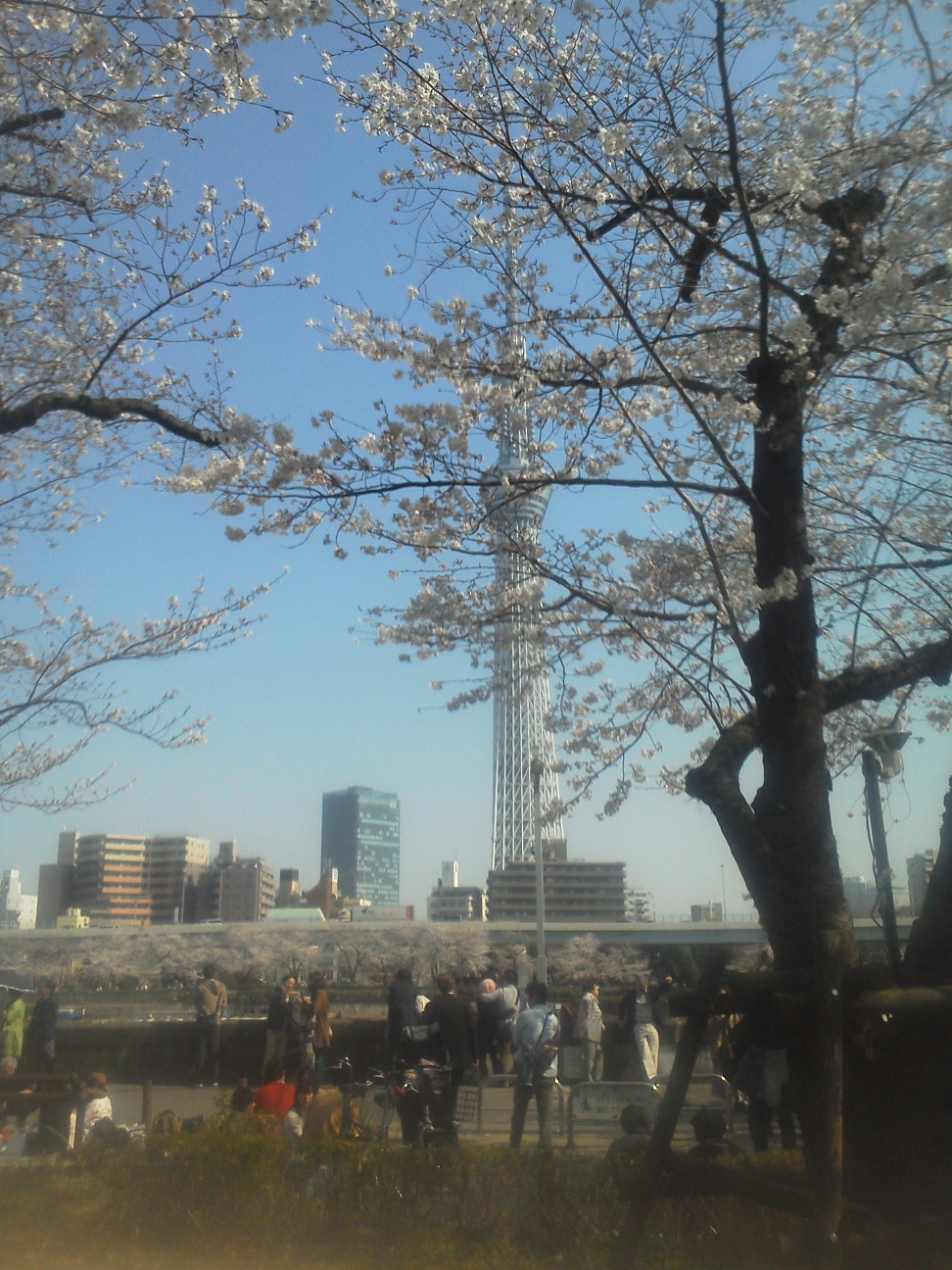 隅田公園の桜は明日あたりが満開でしょうか。携帯で写した写真を添付します。