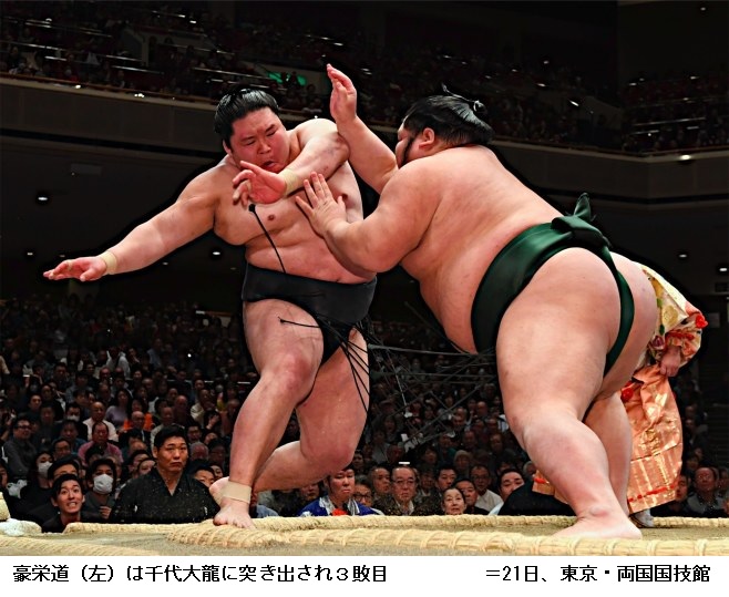 大関・豪栄道に千代大龍は、千代大龍が突き出しで勝ちました。豪栄道は3敗目です。