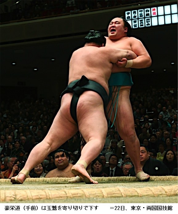大関・豪栄道に隠岐の海は、豪栄道が寄り切り。豪栄道は7勝目です。