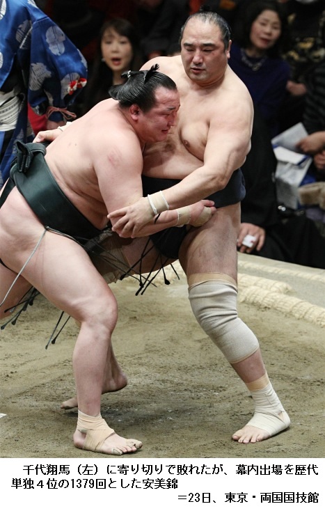 千代翔馬に安美錦は千代翔馬が寄り切り。
