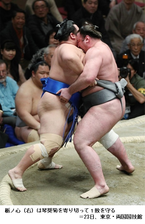 栃ノ心に琴奨菊は栃ノ心が寄り切りで勝ちました。栃ノ心は1敗を守りました。