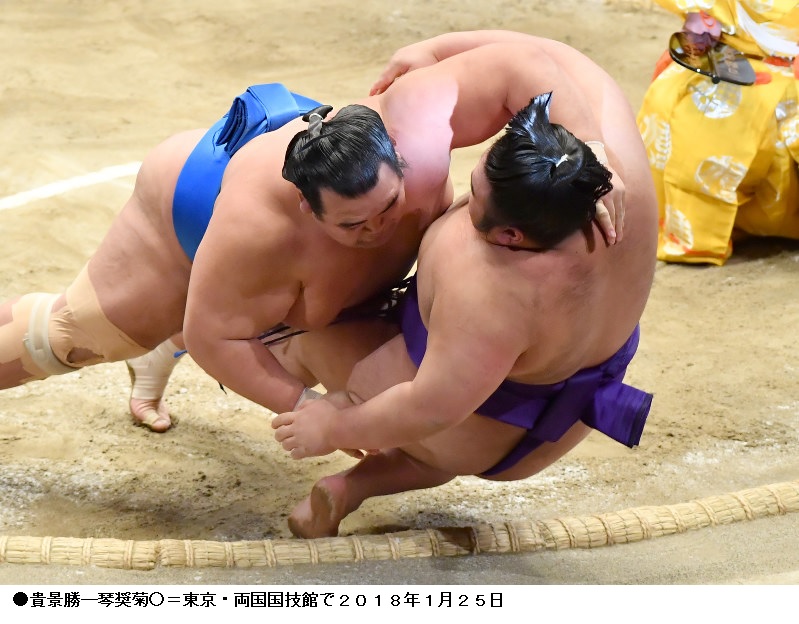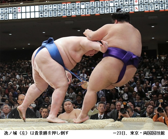 貴景勝に逸ノ城は逸ノ城が押し倒し。