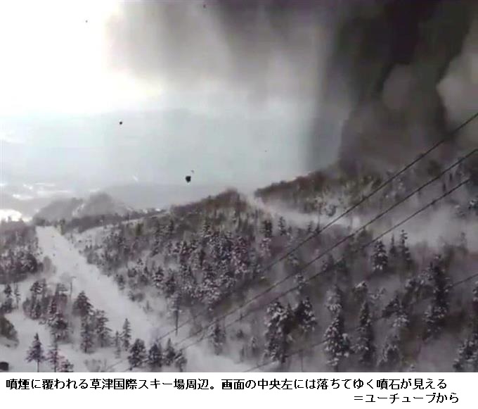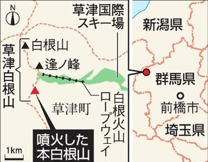 吾妻広域消防本部によると、23日午前10時5分ごろ、草津国際スキー場の利用客から「本白根山が噴火し、ゴンドラに噴石が当たってけが人がいる」と119番通報があった。