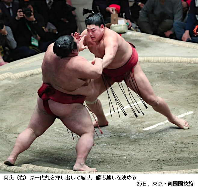 阿炎に琴奨菊は、琴奨菊が寄り切りで勝ちました。