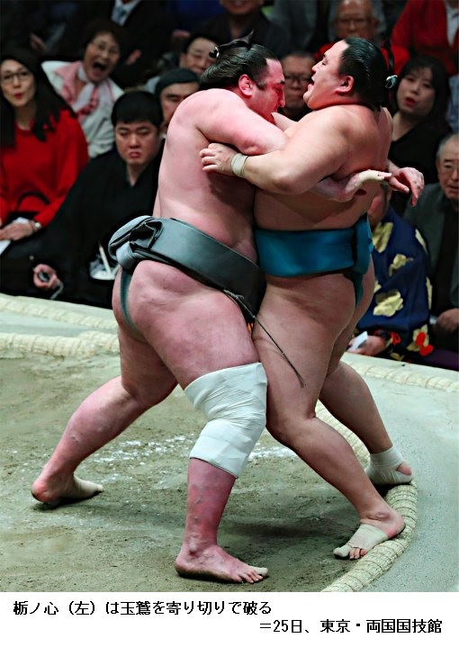 琴奨菊に玉鷲は、玉鷲が押し出し。