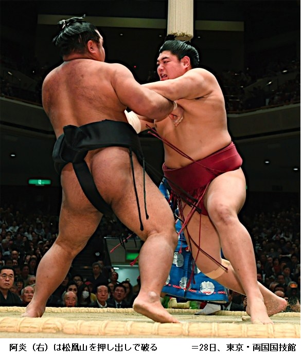 阿炎に魁聖は、阿炎が送り出しで勝ちました。
