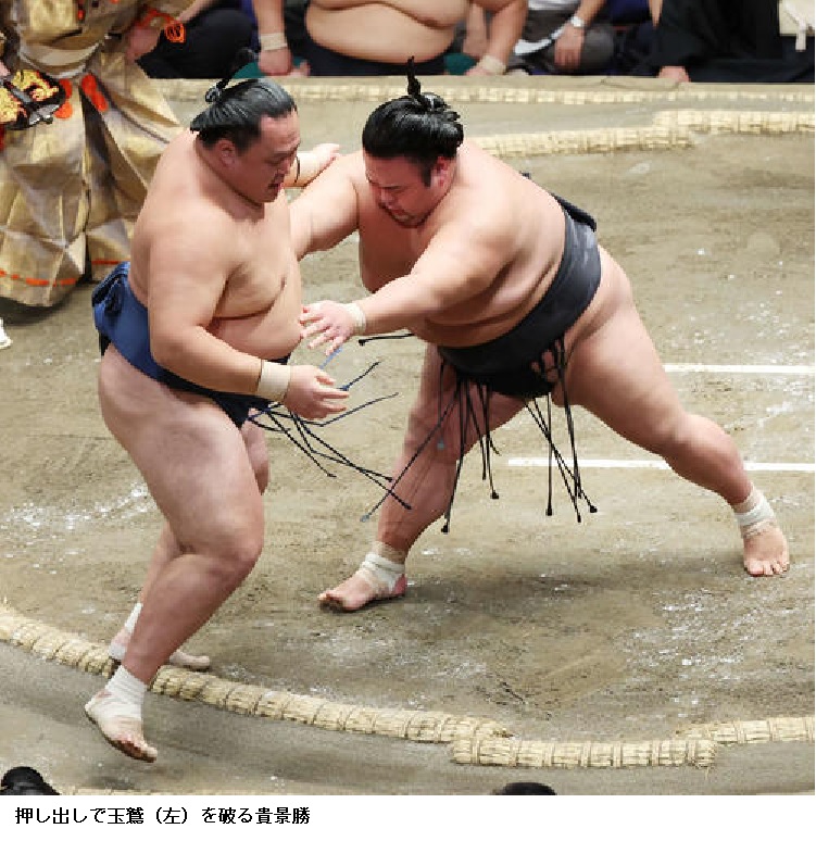 7度目のかど番の大関貴景勝(27=常盤山)が、2日目から5連勝で5勝1敗とし、優勝争いの先頭を守った。対戦相手の前頭玉鷲は、この日が初土俵からの通算連続出場1544回で、元関脇富士桜を抜いて歴代単独2位となった鉄人。圧力のある相手との押し相撲対決を制した。