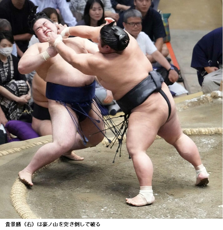 初日こそ同体取り直しの末、前頭北勝富士に敗れたが、その後は無敗を守っている。持ち前の突き、押しで2日目は小結錦木、3日目からはいずれも前頭の明生、朝乃山、阿炎と難敵を次々と退けてきた。先場所は両膝のけがで全休したが、連勝で勢いに乗ってきた。 [日刊スポーツ 2023年9月15日17時46分]