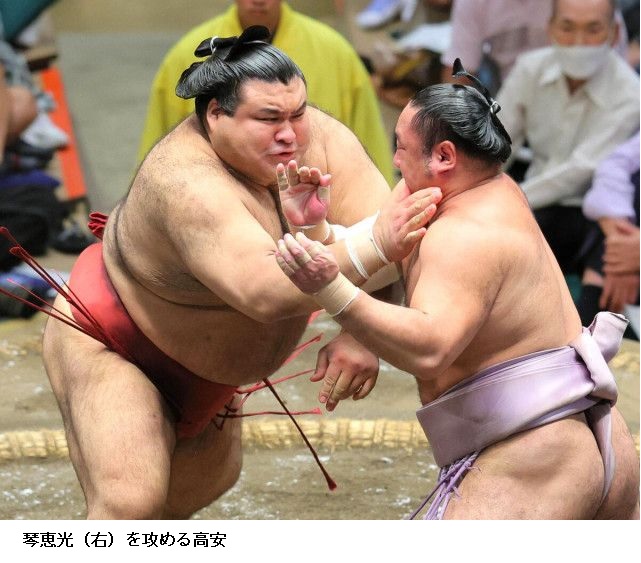 大関経験者で東前頭7枚目の高安(33=田子ノ浦)が、今場所の優勝を占う1敗対決に敗れ、優勝争いのトップから陥落した。
