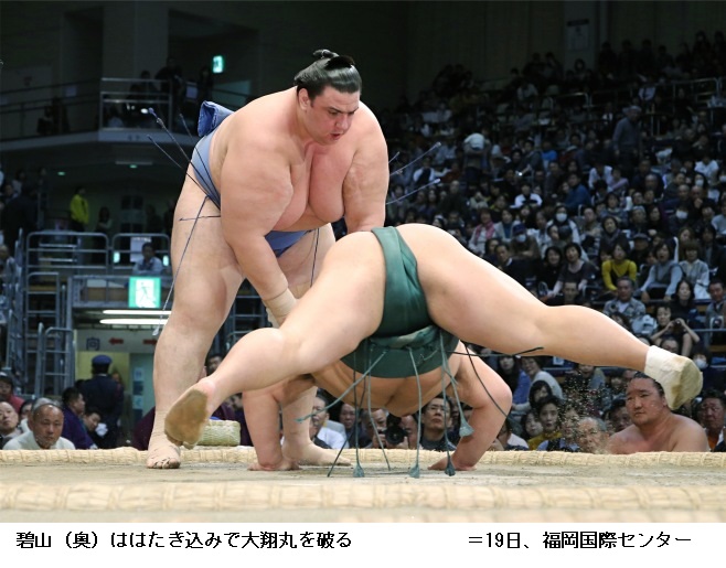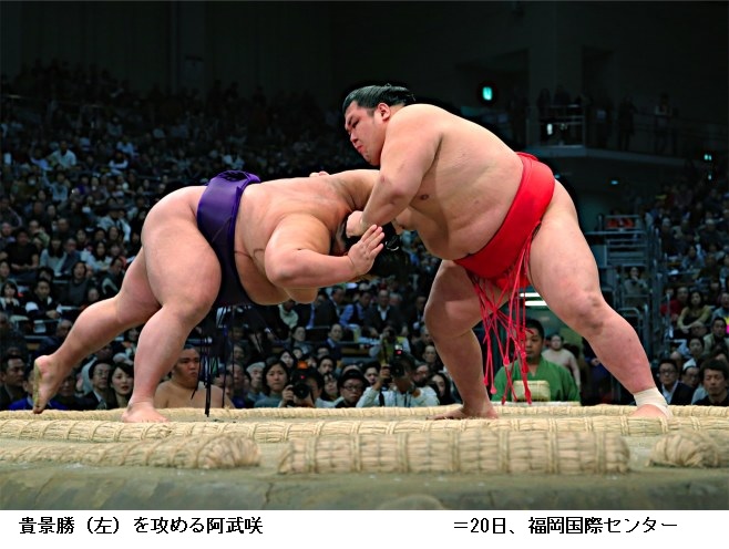 貴景勝に阿武咲は阿武咲がはたき込み。ともに21歳、期待の若手どうしの対戦は阿武咲が制しました。
