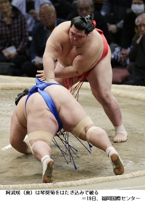 阿武咲に琴奨菊は、阿武咲がはたき込み。