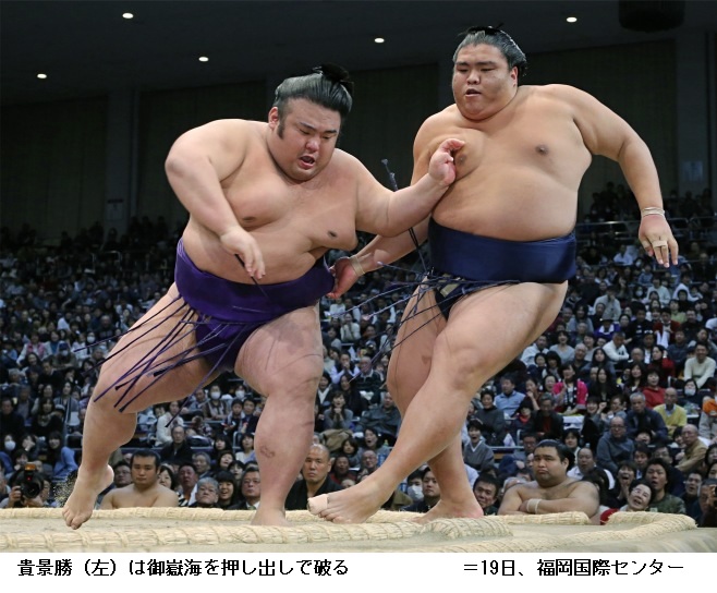 そのうえで同じ八角部屋の隠岐の海とともに2敗を守ったことについて「九州場所の宿舎に帰ったときに、すごい笑顔で待っててくれている。2人でもっと勝っていきたいと思う。あと2日間、精いっぱい取るだけ」と笑顔を見せながら話していました。