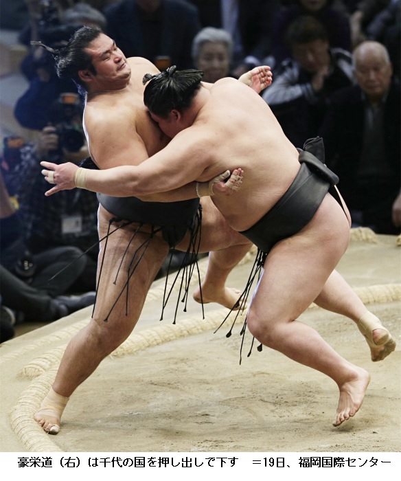 千代の国に大関・豪栄道は、豪栄道が押し出しで勝ちました。豪栄道は連敗を止めて6勝目を挙げました。