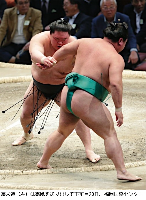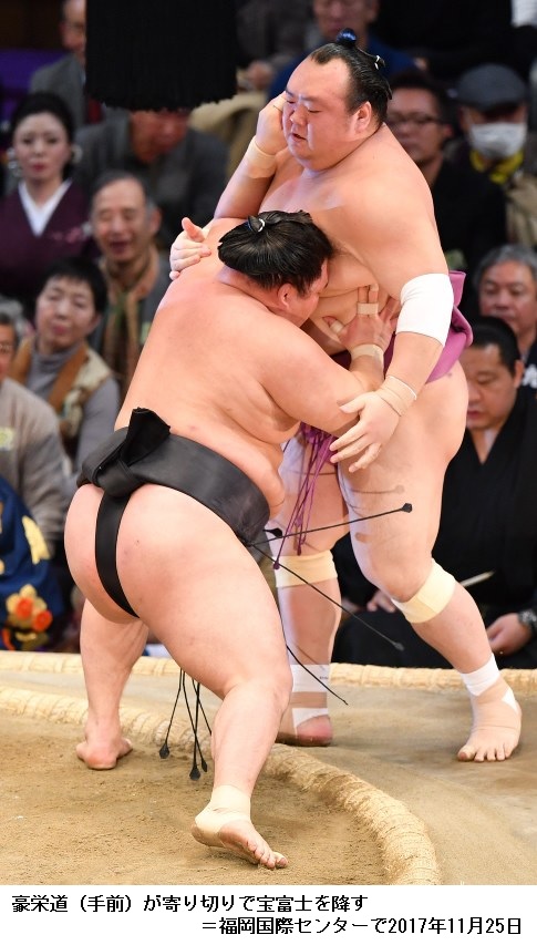 宝富士に大関・豪栄道は豪栄道が寄り切りで勝ちました。豪栄道は9勝目です。