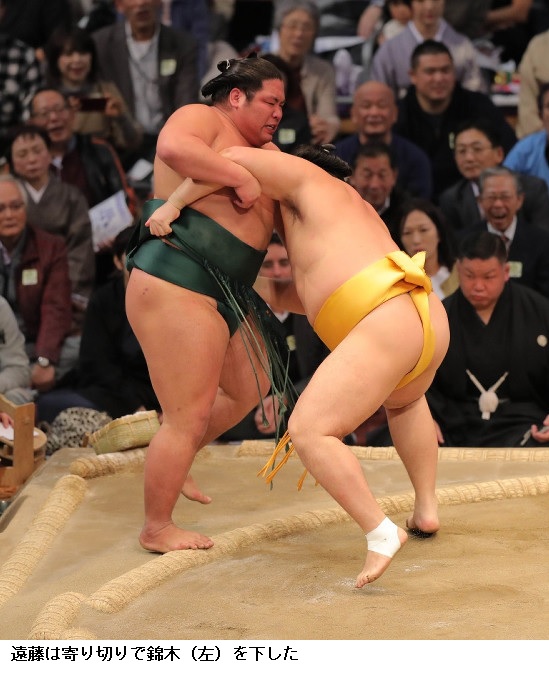 玉鷲に遠藤は、玉鷲が押し出し。遠藤は4敗目です。