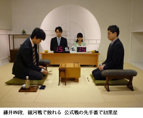 藤井四段、銀河戦で敗れる 公式戦の先手番で初黒星 ―― 公式戦29連勝の新記録を樹立した将棋の最年少プロ、藤井聡太四段(15)が23日、CS「囲碁将棋チャンネル」で放送された銀河戦本戦トーナメントHブロック2回戦で上村亘四段(30)に88手で敗れた。