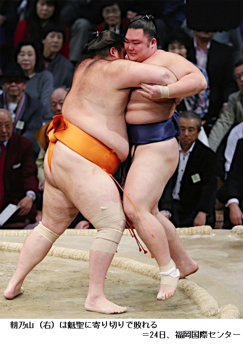 妙義龍に魁聖は、妙義龍が押し出しで勝ちました。