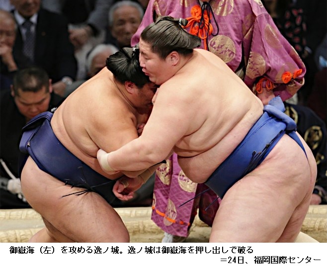 御嶽海に逸ノ城は、逸ノ城が押し出し。
