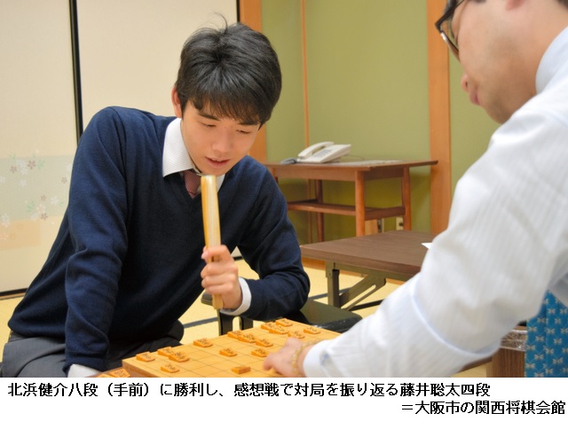 来年7~9月の王位戦七番勝負で菅井竜也(たつや)王位(25)に挑戦する棋士を決める戦いの一環。対局は大阪市福島区の関西将棋会館で午前10時に始まり、午後5時49分に終局した。終局後、藤井四段は「序盤から突っ張って、それが良かったのかどうかは分からないが……。その後、激しい展開になり、難しいと思っていた」と述べた。王位リーグ入りまで、あと2勝と迫ったことについては「強い人と指すことが出来るので、ぜひ、そこを目指したい」などと語った。
