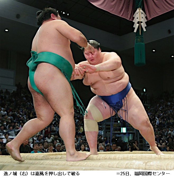 大翔丸に逸ノ城は大翔丸が押し出しで勝ちました。逸ノ城は2敗目です。