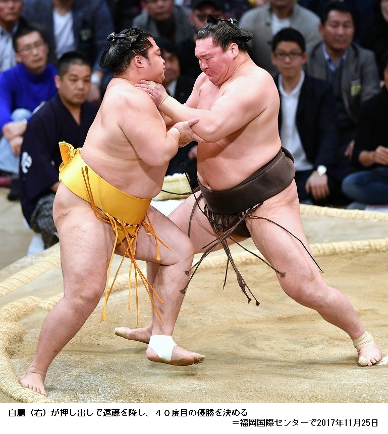 大相撲九州場所千秋楽 白鵬14勝1敗 40回目の優勝 ―― 大相撲九州場所は、福岡市の福岡国際センターで千秋楽の取組が行われ、25日40回目の優勝を決めた横綱・白鵬は、大関・豪栄道に勝って、14勝1敗として今場所を締めくくりました。中入り後の勝敗です。