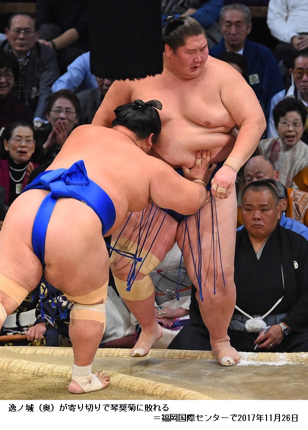 琴奨菊に逸ノ城は、琴奨菊が寄り切り。