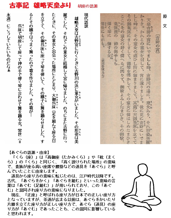 中央のコトバが正しく純粋のものとすれば、東国のコトバは異様なものと感じるかもしれません。しかし、中央のコトバといっても奈良方言を中核とする一地方語にすぎないのですから、『古事記』や『万葉集』のコトバがすべて正式な雅語とのみ受け取ることは出来ません。『古事記』に出て来るアグラ(足座)も後世ではもともと西のコトバであったことも知らずに東国方言と記しているのが一般だったのです。