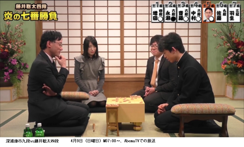 インターネットテレビ局「Abema(アベマ)TV」の番組企画で激突し、藤井が勝っている。公式戦では初対局となる。今日2日は順位戦C級2組6回戦で脇謙二八段(57)との対局を控えている藤井は、「1つでも多く対局できるよう、全力でぶつかっていきたい」とコメントした。対する深浦は、「注目の棋士が相手。しっかり対策を練りたい」と話した。