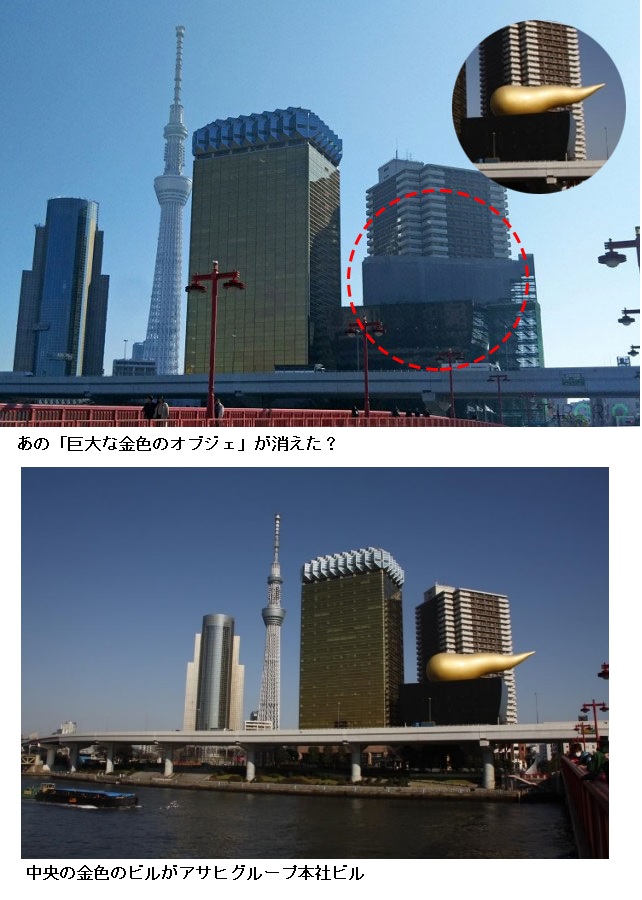 聖火台の炎が消える? ―― 墨田区と台東区の境である隅田川沿いで、もっとも存在感を放つ建築物であろう金色のオブジェ。