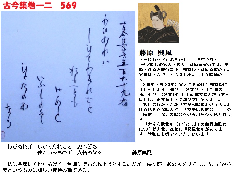 藤原興風 古今集巻一二 569