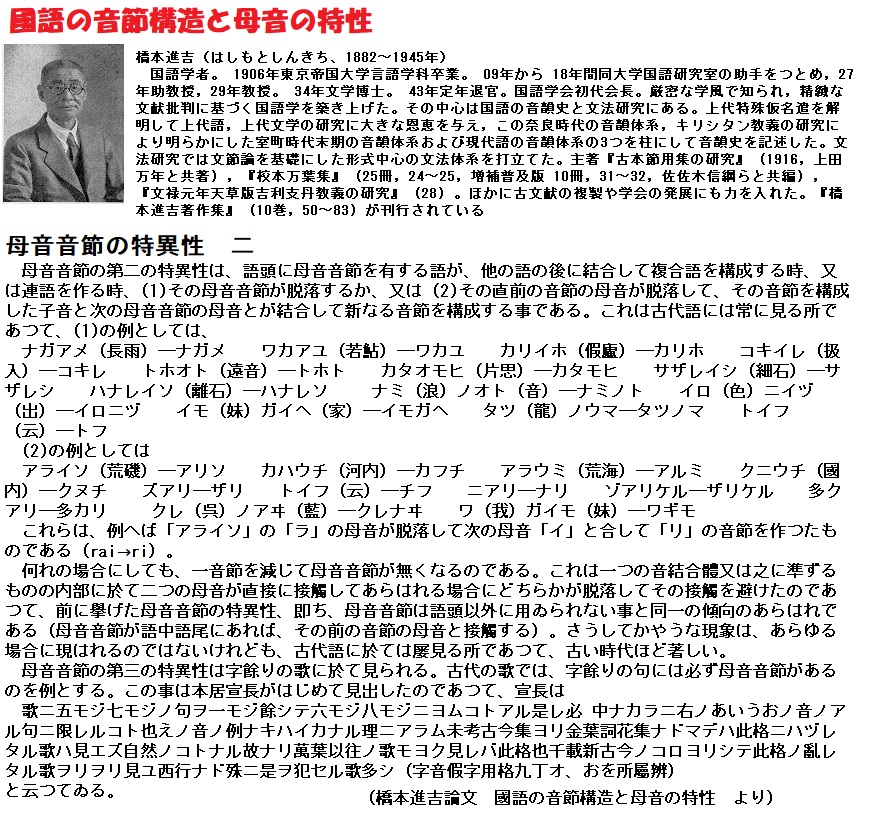 国文学者 橋本進吉はその論文の中で、日本語では語頭に母音を有する語が、他の語に結合して複合語または連語を作る時、