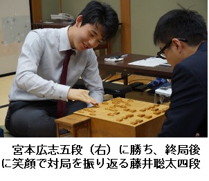 藤井四段は「今日の難解な将棋を何とか勝つことができたので、一歩一歩頑張っていきたい」と話した。