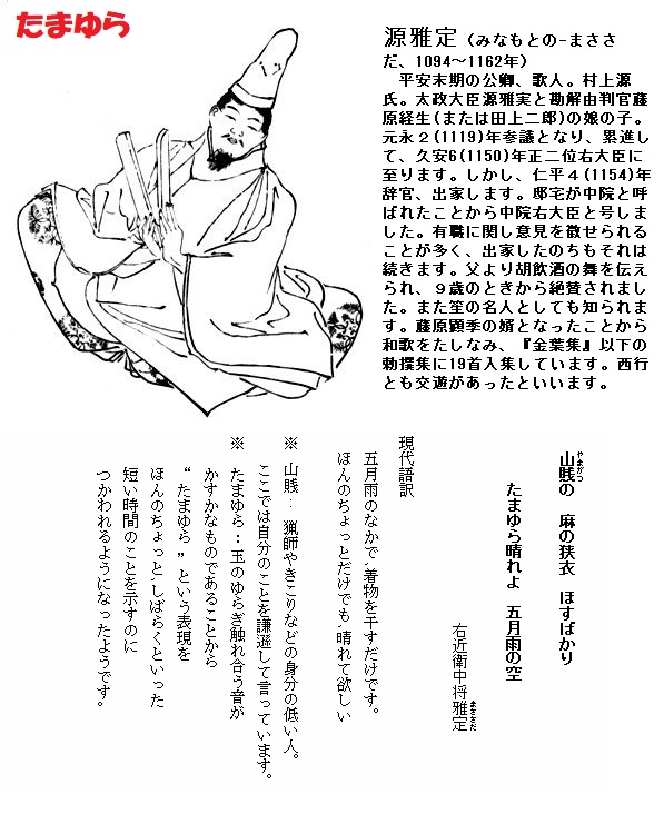 山賎の麻の狭衣ほすばかりたまゆら晴れよ五月雨の空