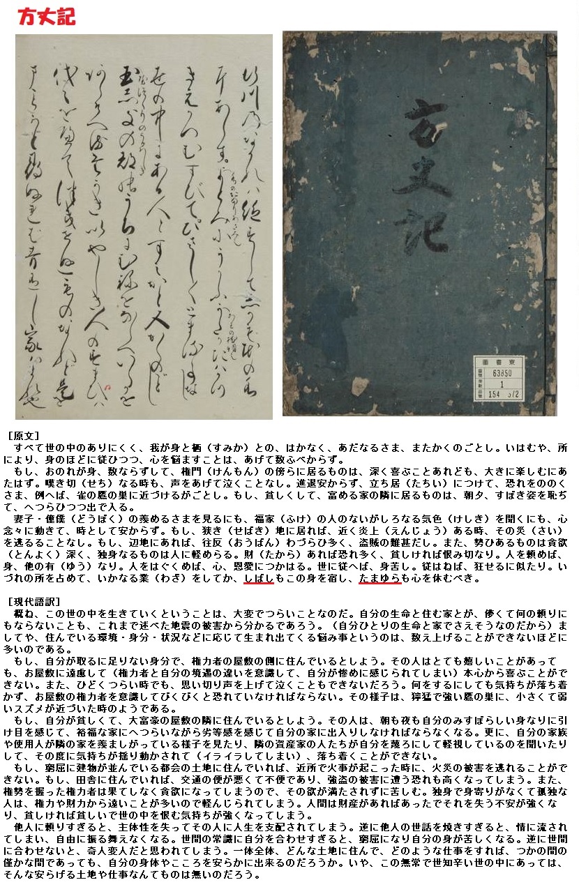 散文の世界にも導入されて、鴨長明『方丈記』に、「たまゆら」と「しばし」を対句に配した例があります。