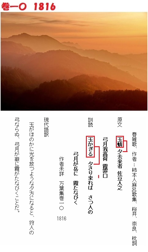 「たまかぎる」と言う言葉が「夕べ」の枕詞に使われた例は、万葉集に2例あります。