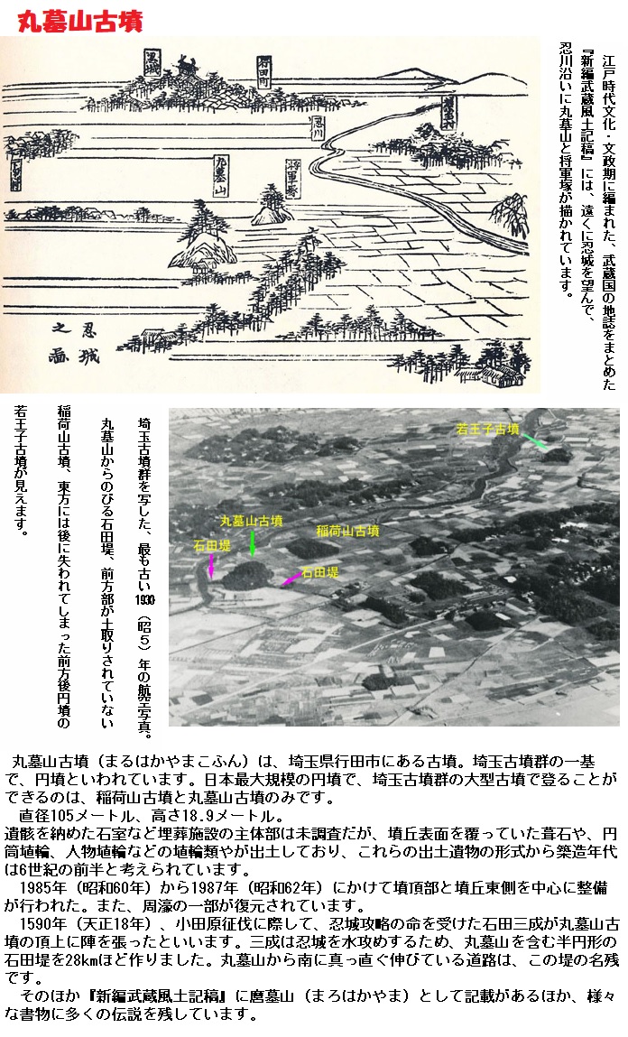 現在の板橋区・練馬区を始め国分寺付近からは昔の人々の生活を支えた色々な道具が掘り出されています。遠く富士山の噴煙を望み、多島海的な入り江に富んだ東京湾は、昔の人々にとってはかなり海産物に恵まれた住みよい所だったのでしょう。人間の生活が営まれるところには必ずコトバが存在します。野山で狩りをし、木の実を集め、川や海で魚介類を採る時、人々はコトバとコトバを交わし、誘い合いながら共同労働に励んだことでしょう。思わぬ獲物の大漁に人の和を輪を作り、火を焚いて一晩中踊りあかし、歓喜の歌声を張り上げたことでしょう。もっとも今となってはそうした人々のコトバの実態をつかむことは出来ません。 弥生時代を受けた古墳時代になると、中央では所謂大和国家が形成され、世界最大と言われる仁徳陵も出来上がります。そろそろ『古事記』や『万葉集』に画かれた世界に近づいてくるのです。当時の東京付近は中央と同じく、一定の水準文化を持った土地でした。埼玉県行田市にある古墳群もかなり有力にこのことを示しています。同所にある『丸墓山古墳』は平地における我が国最大の円形古墳だと言われます。