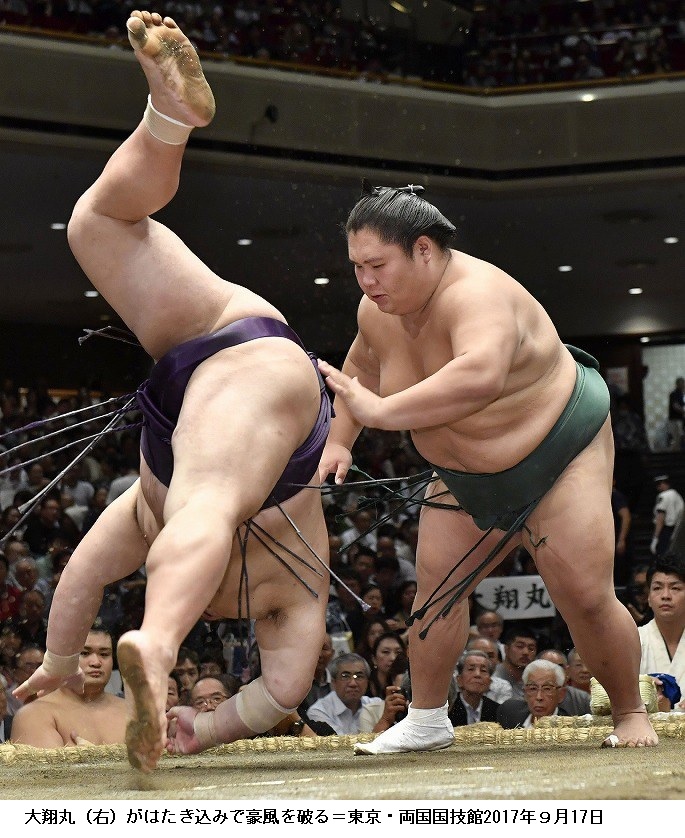 カド番の西大関・豪栄道(31)=境川=、東前頭11枚目・大栄翔(25)=追手風=と東前頭12枚目・大翔丸(26)=追手風=も白星をあげ、1敗で並んでいる。